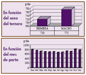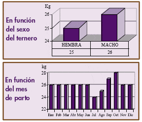Los terneros pesan un kilogramo más al nacimiento que las terneras, y los que nacen en octubre pesan tres o cuatro kilogramos más que los que nacen en julio y agosto.